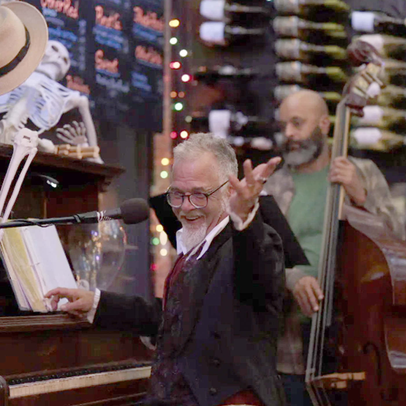 LAFAYETTE BEN CHARLATAN has been called the spawn of Leon Russell, Leon Redbone and Tom Waits. He is a singing piano tickler who milks 20th century American musical styles from ragtime to vaudeville to show tunes to jazz to rhythym and blues, delivering his own unique melange with a showman’s greasy, gritty passion. His band “THE CHARLATONES” back him up, evoking a smoky jazz den, vibrating with echos of The Hot Five.